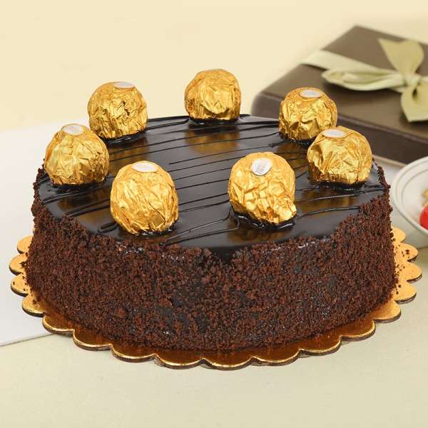 – 1/2 Kg Chocolate Cake containing 7 Ferrero Rocher chocolates