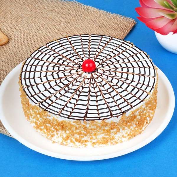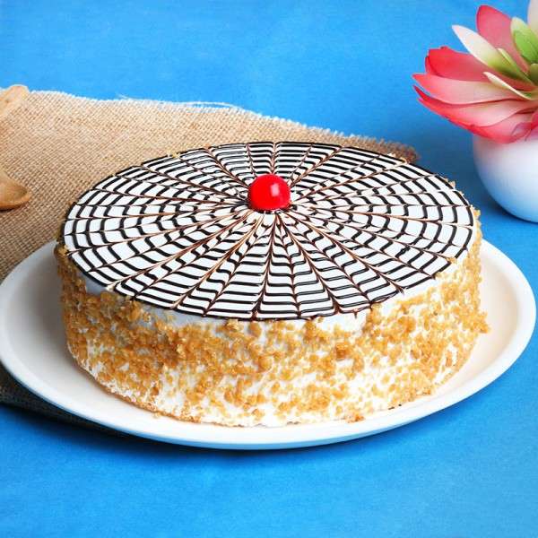 Tender yet crunchy, every bite of this delicious Butterscotch cake is heavenly in taste. On the top, it is decorated with rich butterscotch cream and chocolate syrup. By the sides, it is covered with Butterscotch chunks, making it more tempting for the cake lovers. So, send this butterscotch cake to your loved ones on their birthdays and make their day happier.