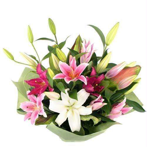 This beautiful flower bunch contains: 6 sticks Pink and White Oriental Lily bouquet for your loved ones. Beautiful paper wrapping Beautiful ribbon bow Seasonal fillers Some of the Lilies may arrive in bud form, ready to bloom into full beauty in…